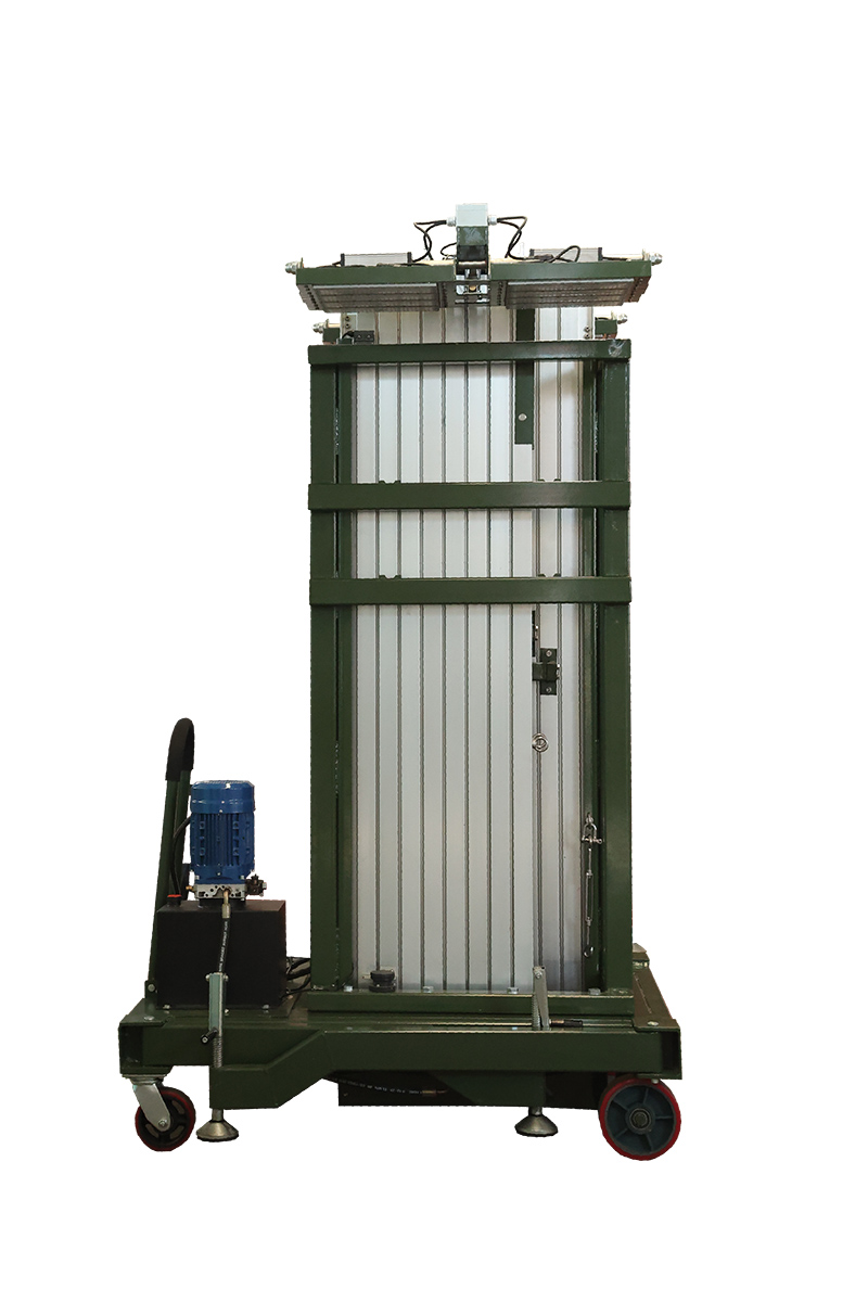 1.設(shè)備底盤采用高強度錳鋼管加工焊接制作,保證設(shè)備在升降過程中的穩(wěn)定性。 2.舉升機構(gòu)采用高強度鋁合金制作(渤海鋁業(yè)),具有良好的抗風性能。
